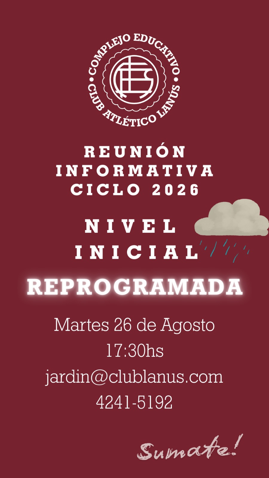 REUNIÓN INFORMATIVA CICLO 2026 NIVEL INICIAL REPROGRAMADA